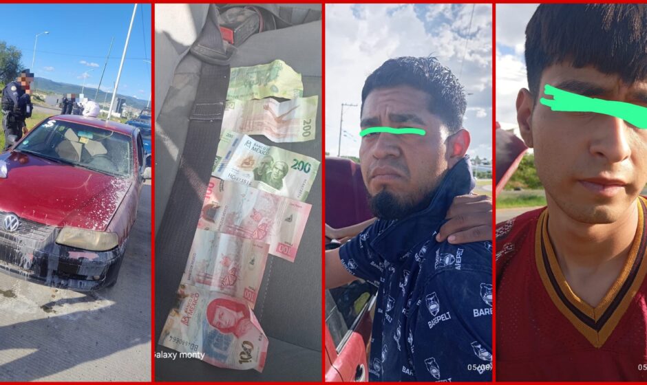Durante el aseguramiento, se les confiscó el automóvil en el que presuntamente escapaban, así como 900 pesos en efectivo, producto del robo.